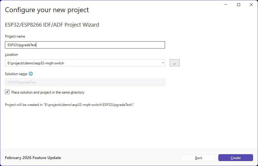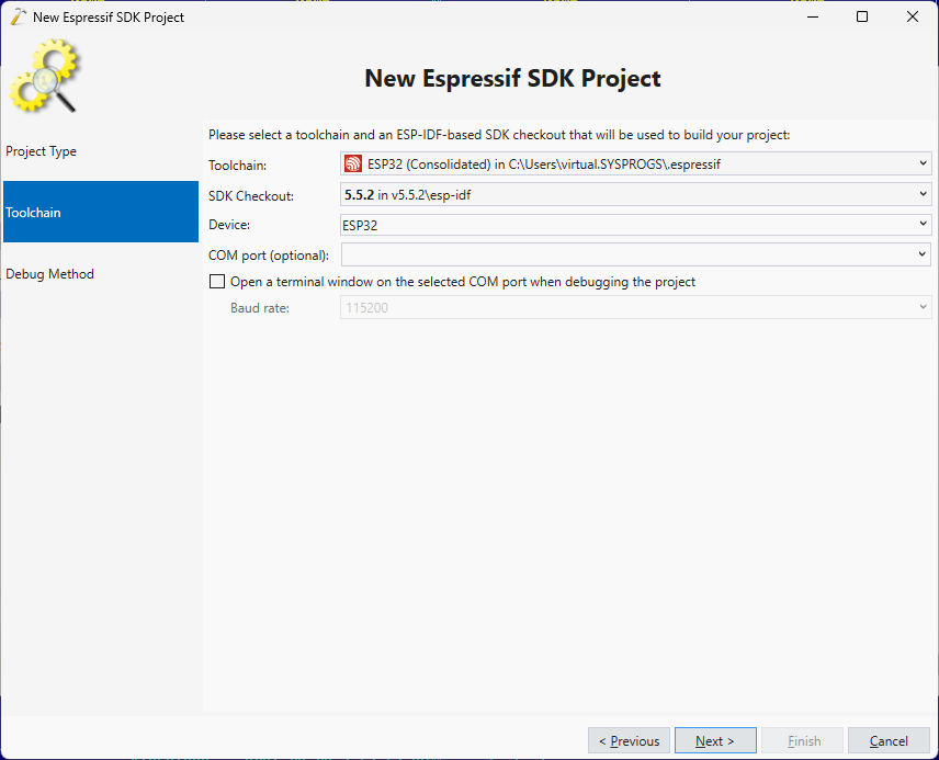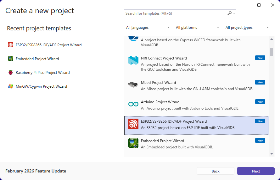 - Start Visual Studio and open the ESP-IDF project wizard: